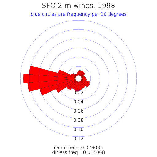 Column 5 in sfo1998.dat has the windspeed in knots, and